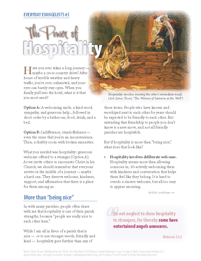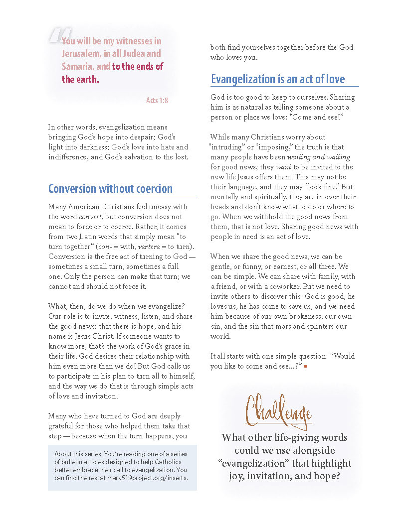 The Everyday Evangelists series can be used in a variety of parish settings: parish bulletins, email newsletters, small discipleship group discussions, evangelization teams, staff & pastoral councils, family faith formation programs, Catholic middle and high schools.